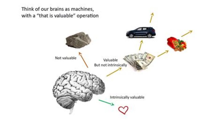 Intrinsic value (animal ethics) The intrinsic value of a human, or any other sentient animal, is value which originates within itself, the value it confers on itself by desiring its own lived experience as an end in itself. Intrinsic value exists wherever self-valuing beings exist..