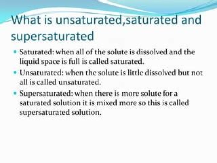 A supersaturated solution is a solution that has more of a substance dissolved into a solvent than normal. A perfect example is sweet tea (popular in Texas), which has sugar added while the tea is still hot, when it cools down, it holds more sugar than it would have, had the sugar been added if the tea had been cold.What is the difference between saturated and unsaturated?