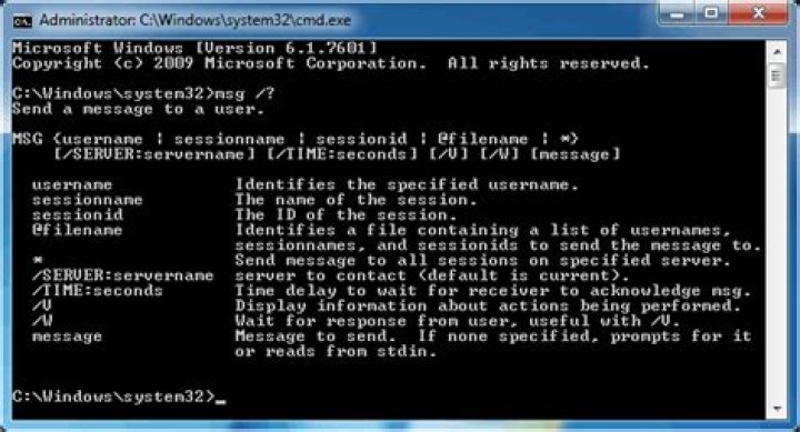 The msg command is a Command Prompt command that's used to send a message to one or more users on the network using the Command Prompt. The msg command functions similarly to the net send command that was popular in Windows XP but it's not a true replacement for it.