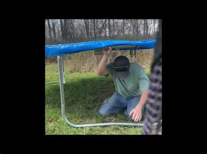 How to Correctly Assemble Trampoline Springs- Spread the trampoline jump mat centered in the metal frame opening.