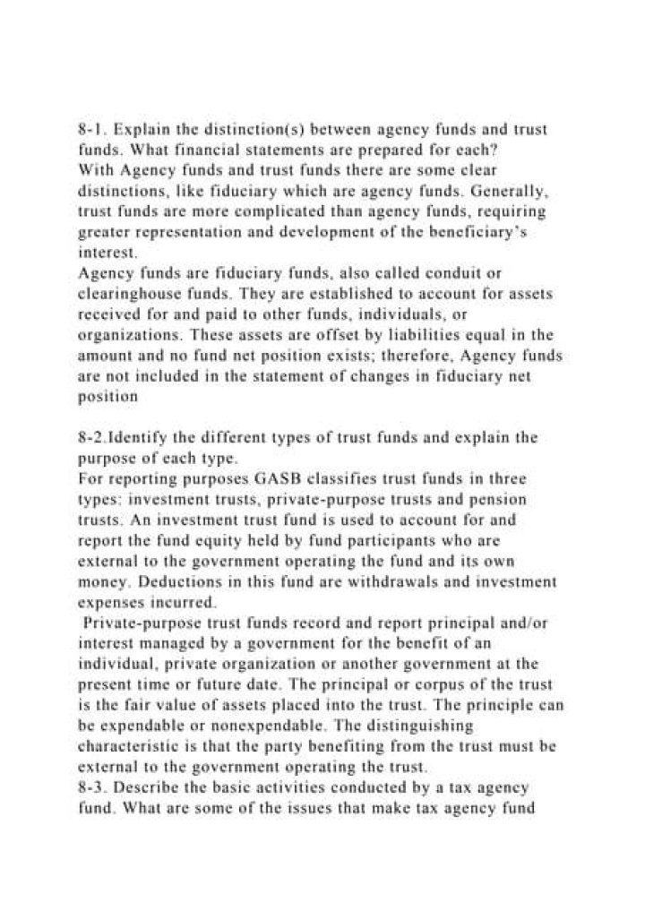 Likewise, what financial statements are prepared for agency funds and trust funds?