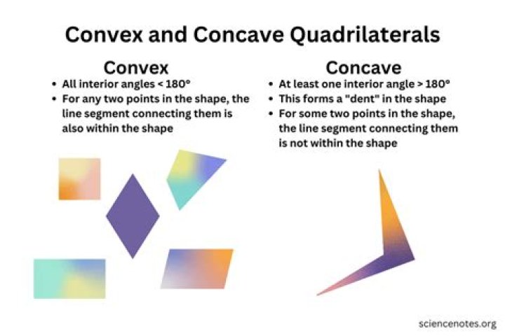 One may also ask, what is the difference between convex quadrilateral and concave quadrilateral? A convex quadrilateral has both diagonals completely contained within the figure, while a concave one has at least one diagonal that lies partly or entirely outside of the figure.