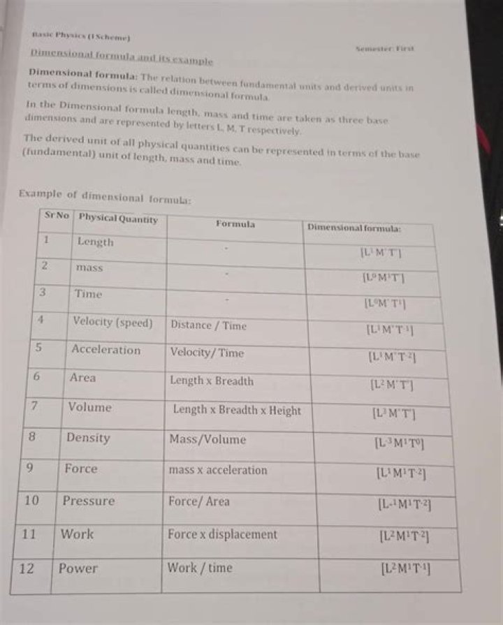 | S.No | Fundamental Physical Quantity | Dimensional Formula |