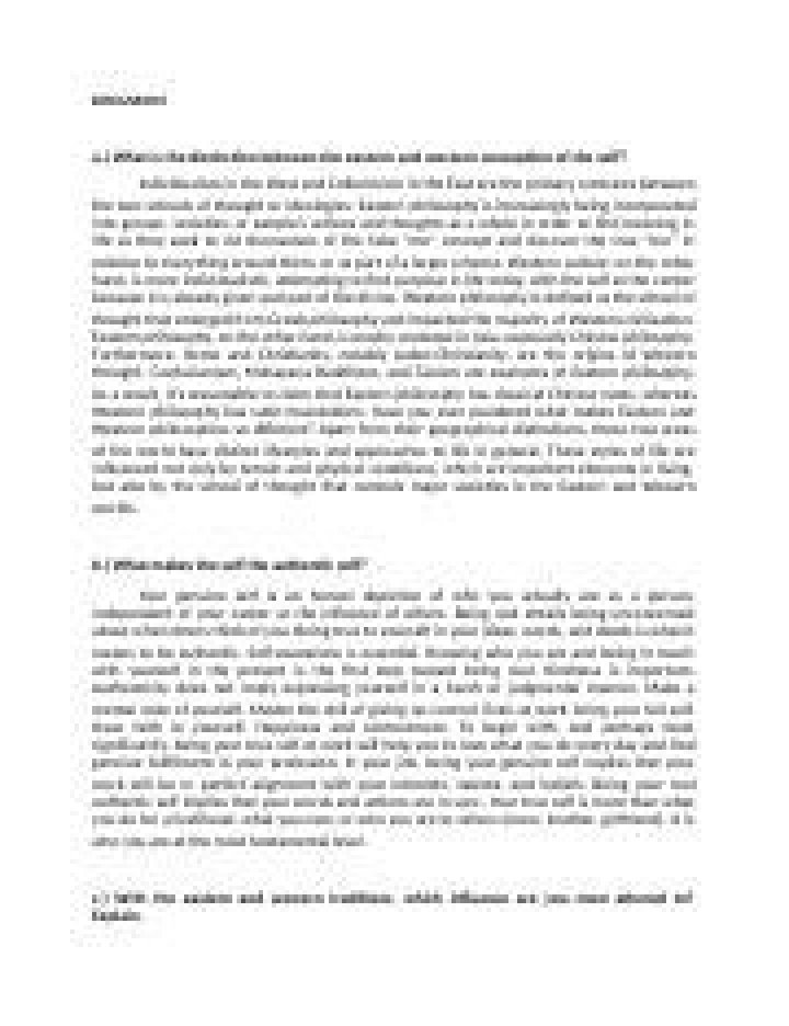 Eastern philosophy or Asian philosophy includes the various philosophies that originated in East and South Asia including Chinese philosophy, Japanese philosophy, and Korean philosophy which are dominant in East Asia and Vietnam, and Indian philosophy (including Buddhist philosophy) which are dominant in South Asia,What is the self It depends?