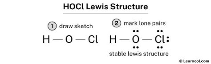 Secondly, how many lone pairs are in HOCl? HOCl has H single bonded to O single bonded to Cl. O has 2 lone pairs and Cl has 3 lone pairs. 14 electrons total.