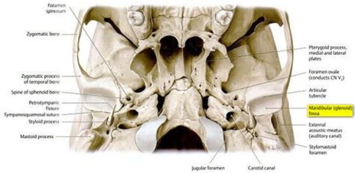 The mandible, or lower jaw, is the bone that forms the lower part of the skull, and along with the maxilla (upper jaw), forms the mouth structure. Movement of the lower jaw opens and closes the mouth and also allows for the chewing of food. The lower set of teeth in the mouth is rooted in the lower jaw.Where is mandibular fossa?