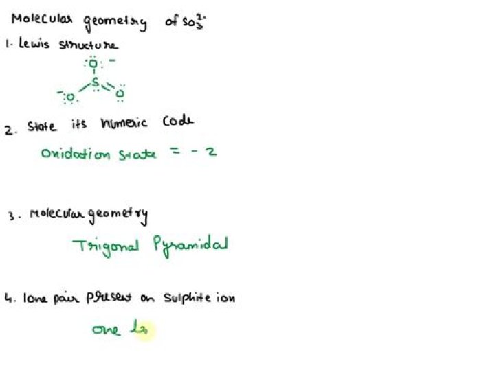 Similarly, is so32 tetrahedral? Explanation: For sulfur trioxide we must distribute 3×6=18⋅valence electrons . And thus O=..S(−OH)2 the central sulfur is sp3−hybridized , and the electron pairs assume a tetrahedral geometry. But molecular geometry is described in terms of ATOMS not electron pairsand so the geometry around sulfur is pyramidal