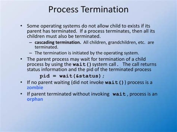 In addition to a unique process ID, each process is assigned a parent process ID (PPID) that tells which process started it. The PPID is the PID of the process's parent. A single parent process may spawn several child processes, each with a unique PID but all sharing the same PPID.What are the different types of process termination?