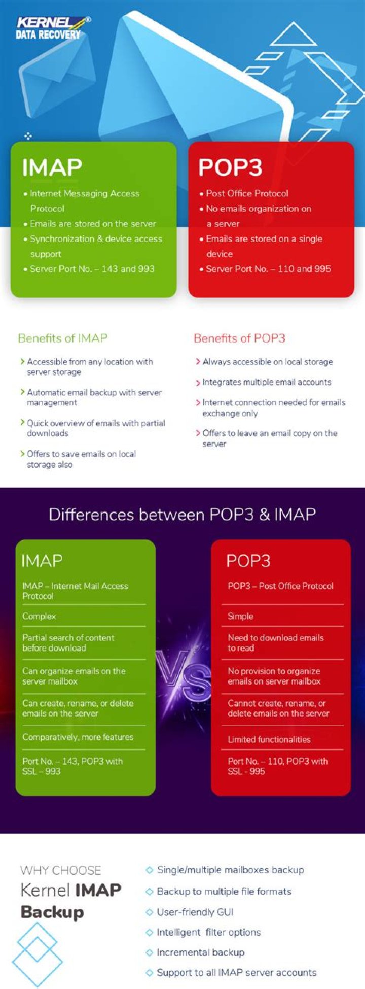The original protocol is POP. Essentially, the main difference of the two protocols is that POP downloads emails from the server for permanent local storage, while IMAP leaves them on the server and just caches (temporarily stores) emails locally. In other words, IMAP is a form of cloud storage.Is IMAP safe?