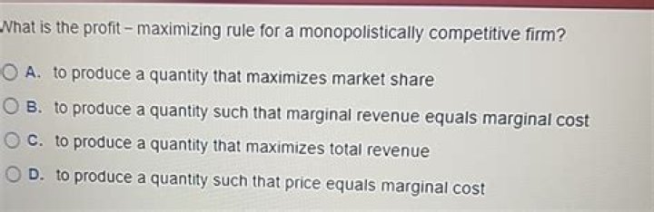 The Profit Maximization Rule states that if a firm chooses to maximize its profits, it must choose that level of output where Marginal Cost (MC) is equal to Marginal Revenue (MR) and the Marginal Cost curve is rising. In other words, it must produce at a level where MC = MR.Why would a monopolistically competitive firm advertise?