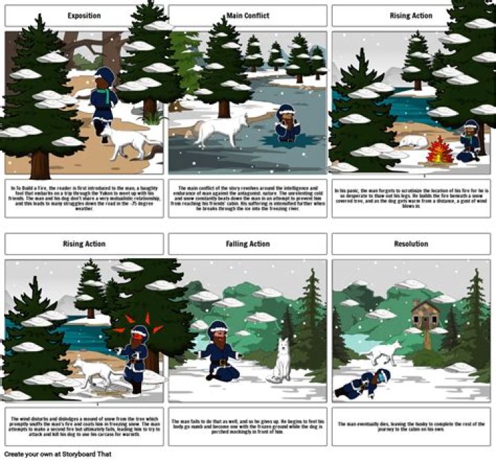 Fire means the difference between life and deathin a setting as cold and bleak as the one presented in London'sstory. The man's first successful fire, which he builds whenhe eats his lunch, helps to establish its importance earlyon.Does the dog die in to build a fire?