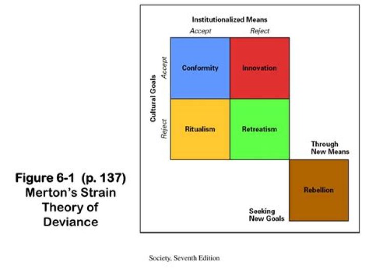According to Merton, there are five types of deviance based upon these criteria: conformity, innovation, ritualism, retreatism and rebellion.What are the 3 theories of deviance?