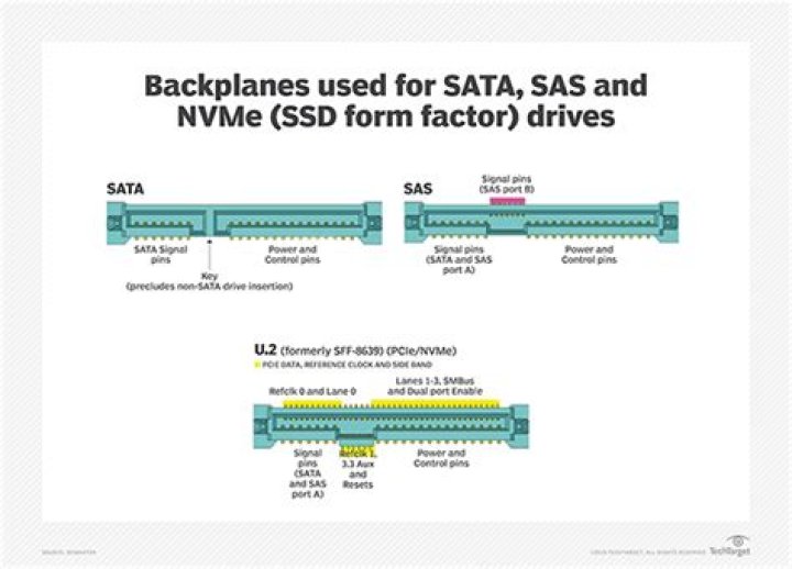 U. 2 supports SATA, SAS, and PCI Express on the same connector. For SAS and SATA, U. 2 uses the same pin locations as legacy SAS and SATA for pin-wise backwards compatibility.
