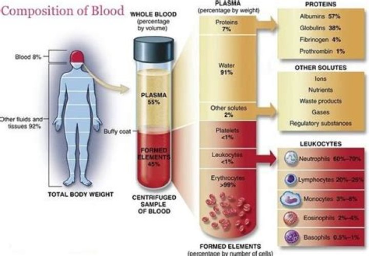 What percentage of human body is blood?