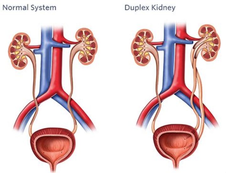 It is usually one-sided, but can occur in both kidneys in 20% of cases. Studies have shown that duplex kidneys have some hereditary traits. This means Rachel's sibling has a one in nine chance of having duplex kidneys, compared with a normal risk of one in 25.Can you live without ureters?