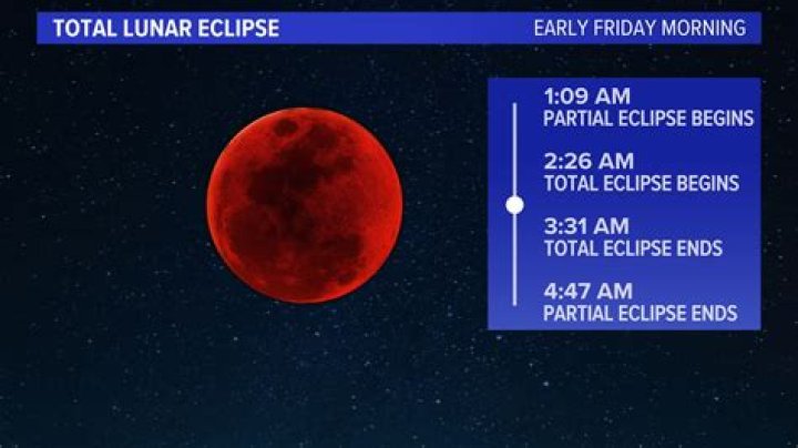 Subsequently, question is, what time does the Blood Moon start in Florida? At 11:41 p.m., the total lunar eclipse begins and the moon is fully engulfed in the inner shadow, with the halfway mark occurring at 12:12 a.m.