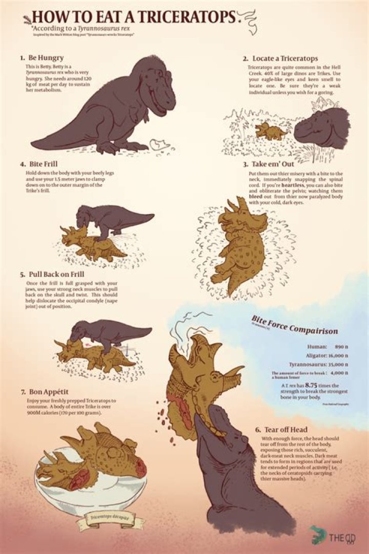 Triceratops was a herbivore and its largest predator was Tyrannosaurus rex. It probably ate cycads and all other low-lying plants; it could chew them well with its cheek teeth. These animals probably lived in vast herds and hatched from eggs.What did baby dinosaurs eat?