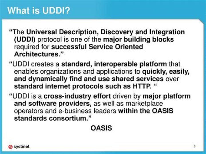 Additionally, what is UDDI Business Registry? The UDDI Business Registry (UBR) is a global implementation of the UDDI specification. The UBR is a single registry for Web services. A group of companies operate and host UBR nodes, each of which is an identical copy of all other nodes.