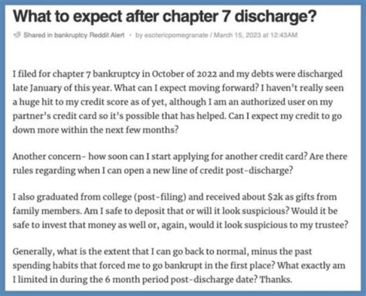 In this regard, does your credit score go up after Chapter 7 discharge?