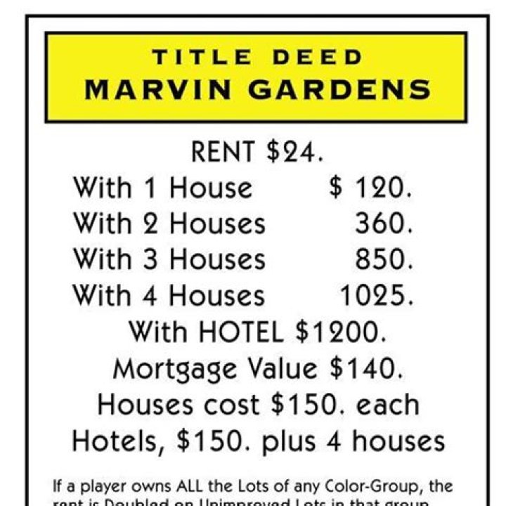 Keeping this in consideration, how much is Marvin Gardens in Monopoly?