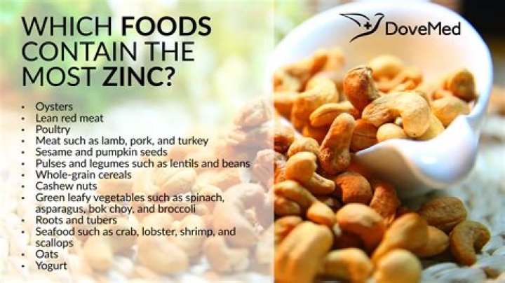 Other zinc sources in a person's diet include low fat yogurt, pumpkin seeds, milk, chickpeas, instant oatmeal, almonds, and Cheddar cheese. These all contain around 1–2 mg of zinc per serving.