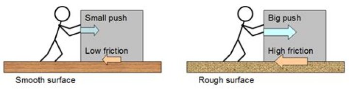 Friction is a force that holds back the movementof a sliding object. The force acts in the opposite direction tothe way an object wants to slide. Obviously rough surfacewill cause more friction! Smooth surface has very lowfriction because in smooth surface there is lessresistance to the movement!.