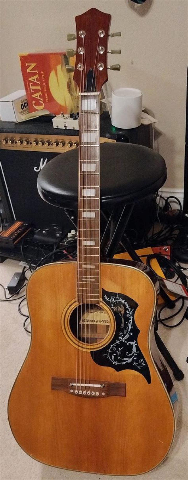 Tele-Star Japanese-made guitars debuted in the U.S. in 1965. The Tele-Star Trading Corporation, (Broadway, New York) was begun by Maurice Laboz in around 1965 and concentrated on relatively humble low-end guitars (and drums), produced mainly by the Kawai company..