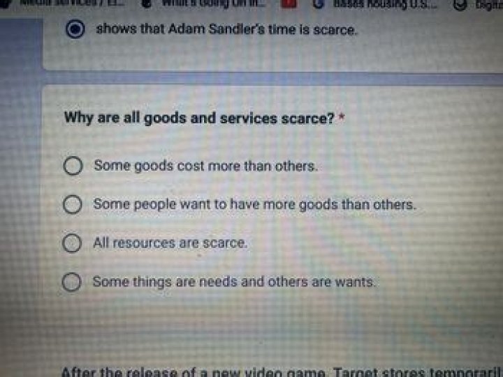 Resources that are commonly accepted as being scarce throughout the world include water, food and forests. Oil and natural gas are also growing increasingly scarce. To an extent, however, resource scarcity is contextually subjective.Are all resources scarce?