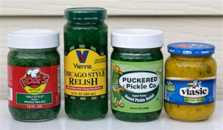 The unique color of the relish, often referred to as "neon green", is created by adding blue dye to regular pickle relish. The first use of Chicago-style relish on a hot dog has been attributed to several different restaurants, including Fluky's and Superdawg.What's the difference between pickles and relish?