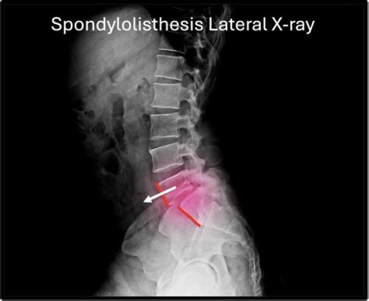 Diagnosing spondylolisthesis If you have spondylolisthesis, you may have difficulty raising your leg straight outward during simple exercises. X-rays of your lower spine are crucial for determining whether a vertebra is out of place. Your doctor may also look for any possible bone fractures on the X-ray images.